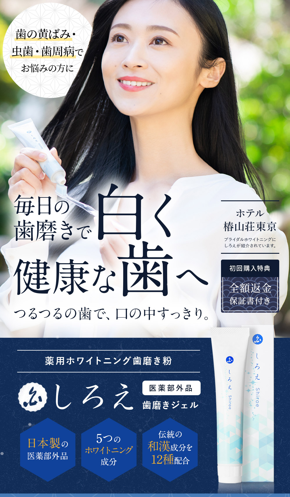そんなあなたにおすすめしたいのが、日本生まれのホワイトニング歯磨き粉「しろえ」。自然派成分にこだわり、毎日の歯みがきで優しく着色汚れを落としながら、本来の白さを引き出してくれるオーラルケアアイテムです。