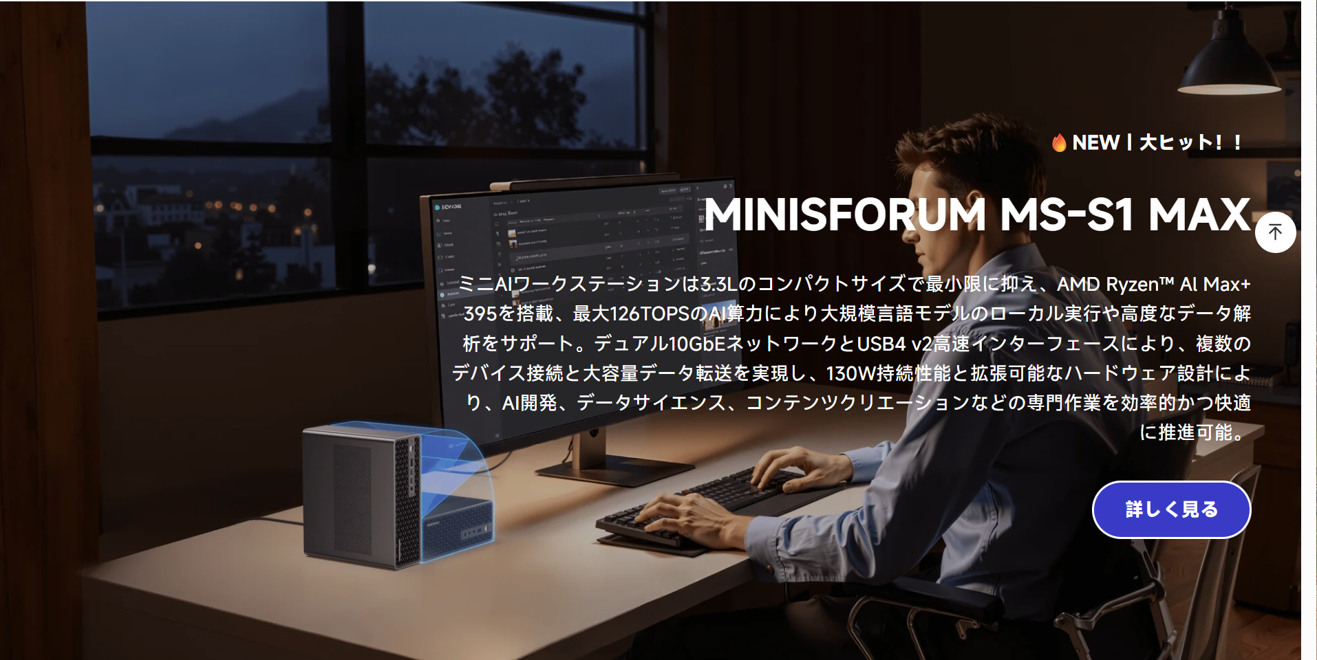 MINISFORUMは、コンパクトなのに高性能なミニPC専門ブランド。
