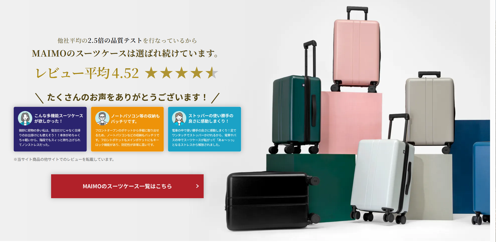 そこでおすすめしたいのが、「MAIMO(マイモ)」のスーツケースです。