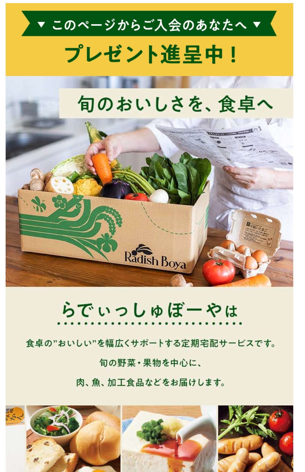 らでぃっしゅぼーやは、1988年にスタートした老舗の宅配食材サービス。