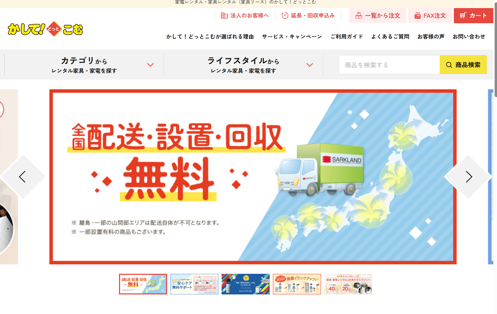 株式会社サークランドが提供する家電・家具レンタルサービス【かして!どっとこむ】です。
