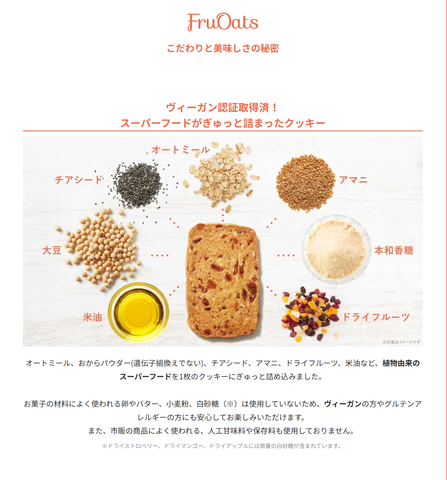 ヴィーガン&グルテンフリークッキー【FruOats】は、