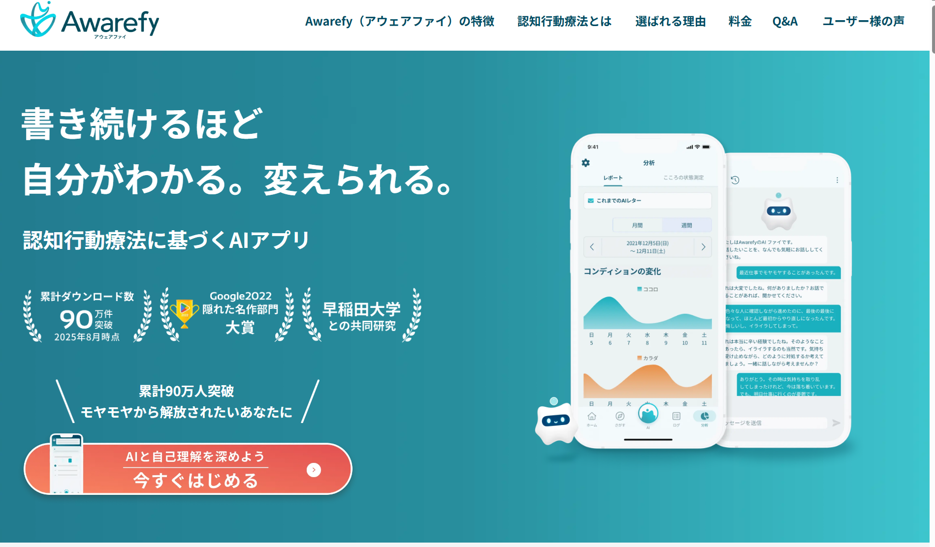 そんな現代のストレス社会の中で、多くの人の心の支えとなっているのが、株式会社Awarefyのメンタルケアアプリ【Awarefy】です。Googleベストアプリ受賞という実績がその評価を証明しており、専門家の知見に基づいたメンタルサポートが「アプリひとつ」で受けられると話題になっています。